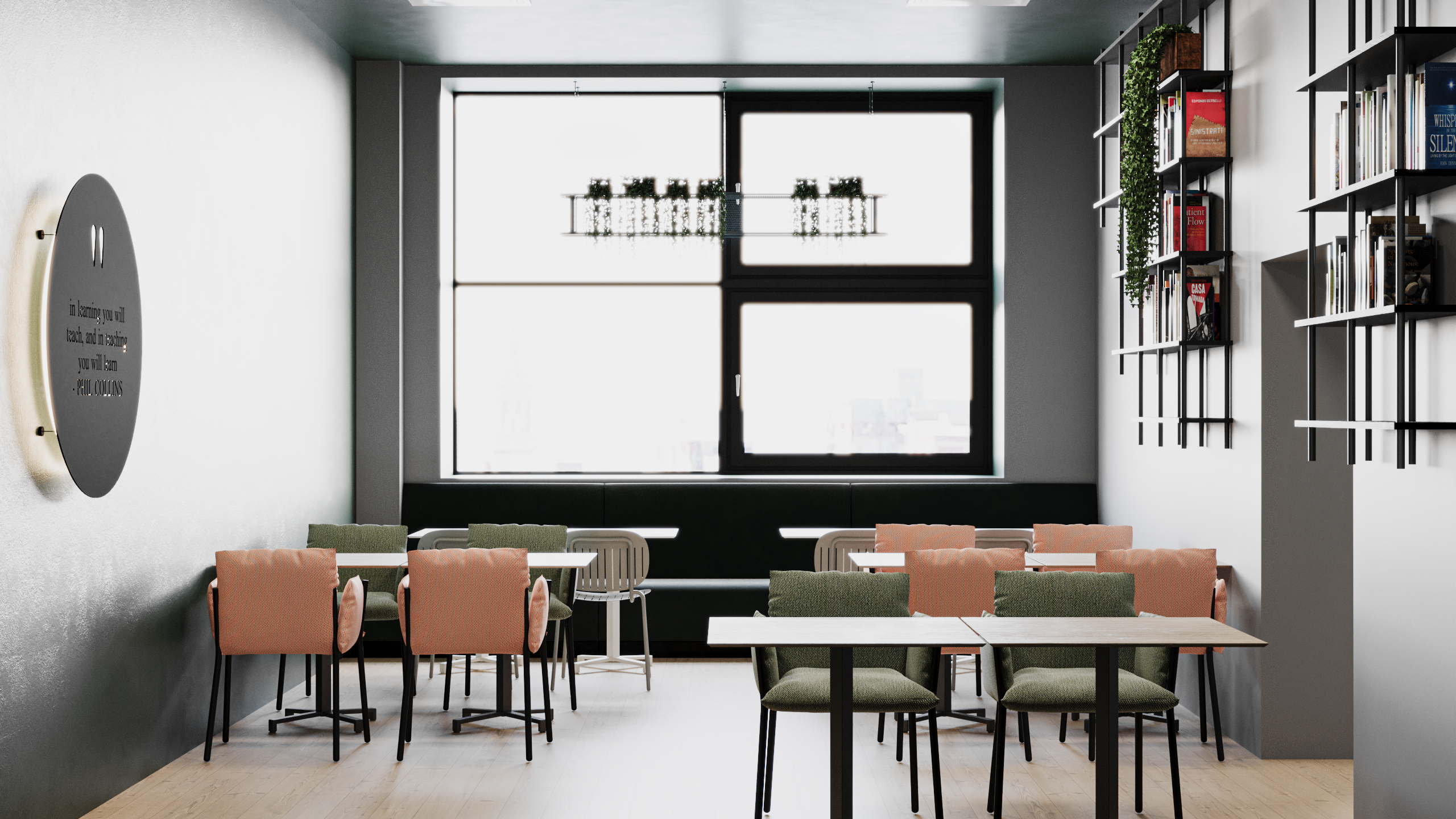 Designul interior nordic este o alegere populară pentru cantinele universitare din București, datorită aspectului său elegant și funcțional. Acest design specific se caracterizează prin linii curate, materiale naturale și o paletă de culori neutră. Cantina din această imagine este un exemplu perfect de design interior nordic, cu mobilierul său modern, pereții săi luminoși și decorul său minimalist.